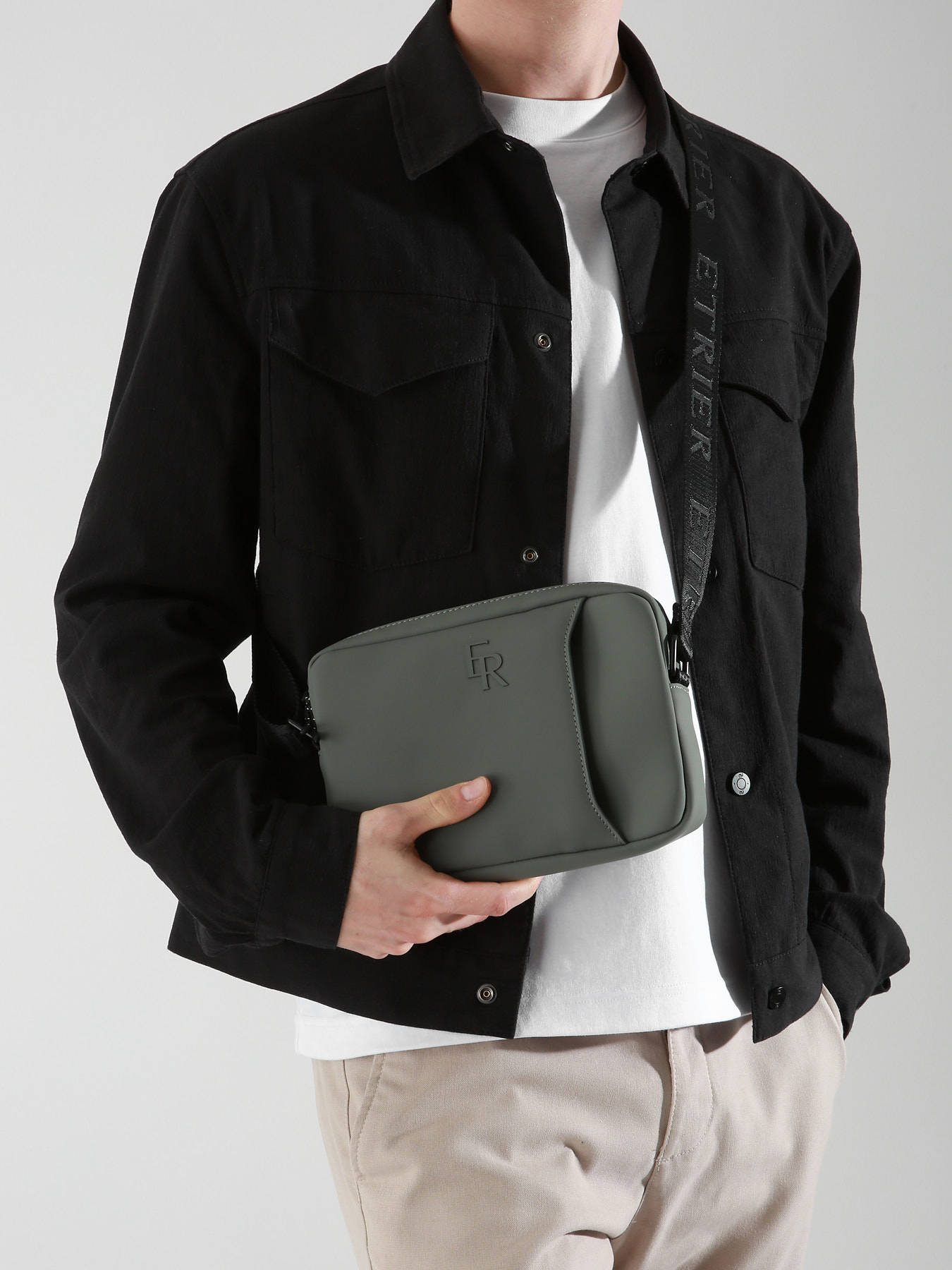 This crossbody bag from the Impulsion line, made of waterproof polyurethane, combines elegance and functionality. It features an embossed tone-on-tone logo and a telescopic handle pass-through for added convenience. It includes a front pocket for quick access to your essentials and a quick-access pocket inside for secure storage.
